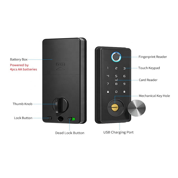 1. Access via App/Fingerprint/Code/Card/Mechanical Key.2. High sensitivity of touchscreen digital board.3. Compatible with TT Lock or Tuya App.